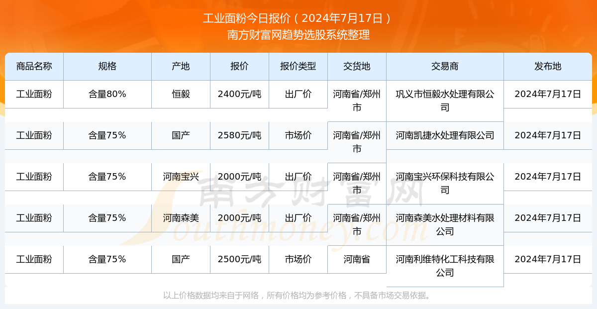 2024年7月17日◈◈★,工业面粉(含量75%)价格为2580.00元/吨芒果视频一二三2021.2021◈◈★,报价人◈◈★:河南凯捷水处理有限公司AG真人中国官网◈◈★,交易地点为河南省/郑州市◈◈★。